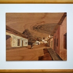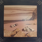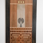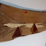 • civilisaziones-intarsio sull tavola di legno di noce 150x40x4 cm