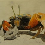 Tra un colpo di sgorbia e l’altro si ostina, con poco costrutto, a litigare con l’acquarello.